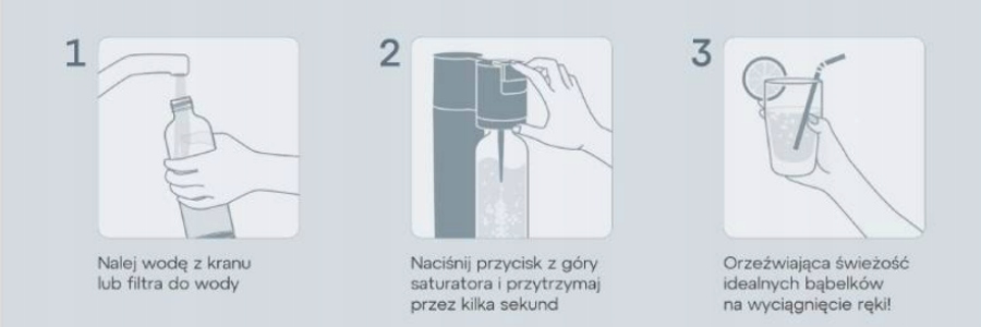 Wystarczy napełnić butelkę, podłączyć ją do urządzenia i przytrzymać przycisk.