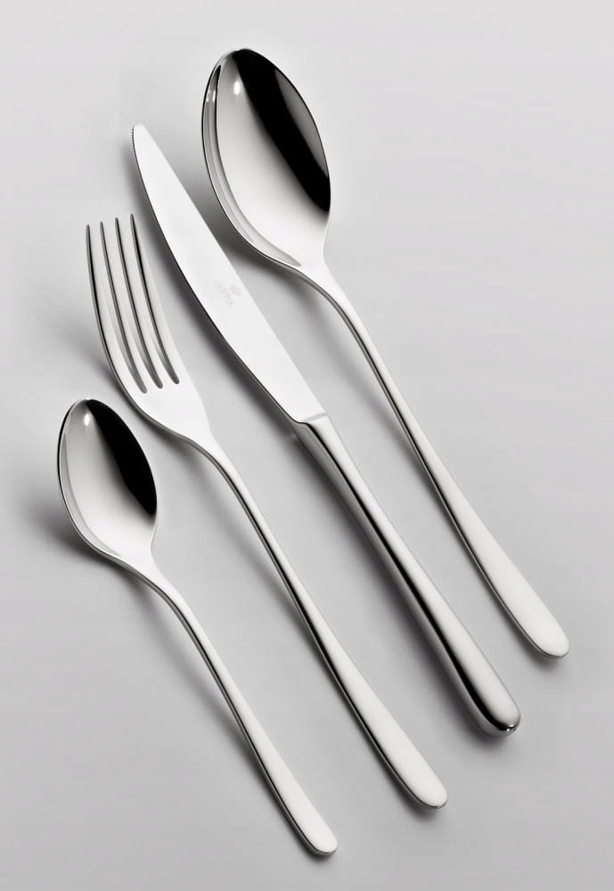 - Smukły, dobrze wyprofilowany i elegancki kształt sztućców, sprawia, że dobrze układają się w dłoni, pozwalając na ich komfortowe użytkowanie.