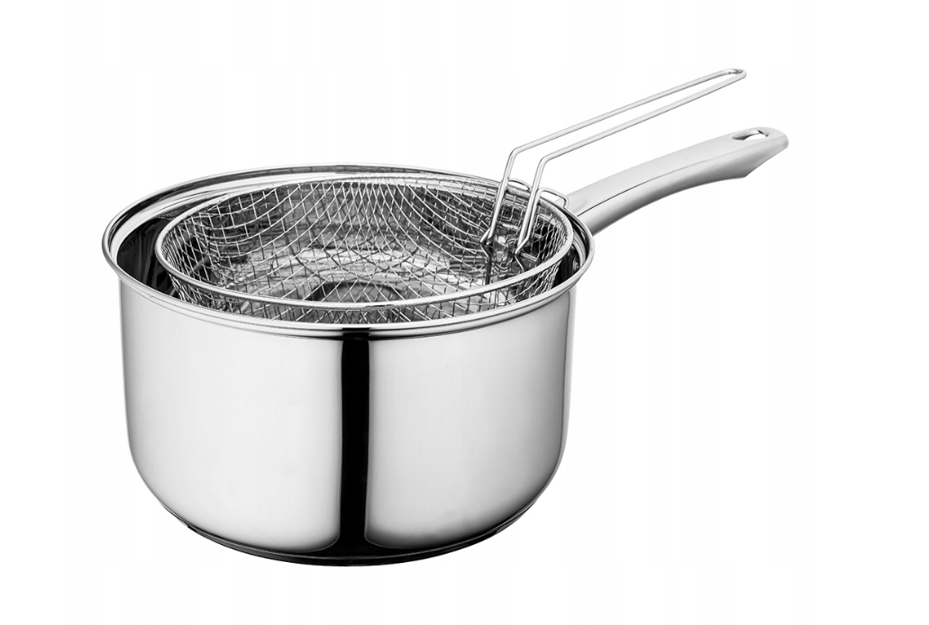 Wszechstronny rondel nierdzewny Altom Design o pojemności 4,5 l to praktyczne i trwałe naczynie, które sprawdzi się w każdej kuchni. Wykonany z wysokiej jakości stali nierdzewnej, zapewnia równomierne rozprowadzanie ciepła, dzięki czemu potrawy smażą się i gotują szybko oraz równomiernie. W zestawie znajduje się stalowy koszyk, który ułatwia smażenie i odcedzanie — bez konieczności używania osobnych sit czy cedzaków.