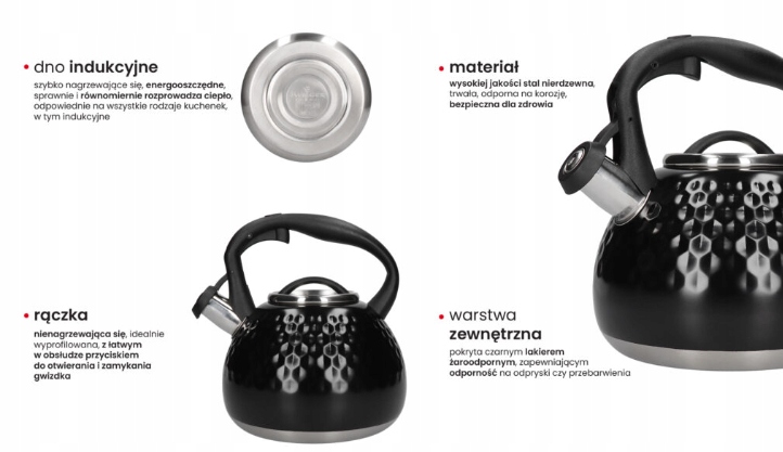 ⭐ Uniwersalność – czajnik działa na kuchenkach indukcyjnych, gazowych, elektrycznych i ceramicznych.