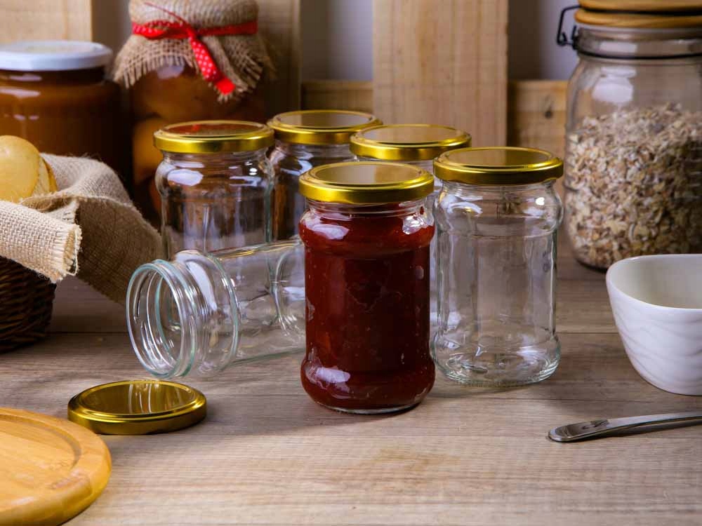 - Eleganckie złote zakrętki – estetyczne wykończenie, które świetnie prezentuje się również jako oprawa domowych przetworów na prezent.